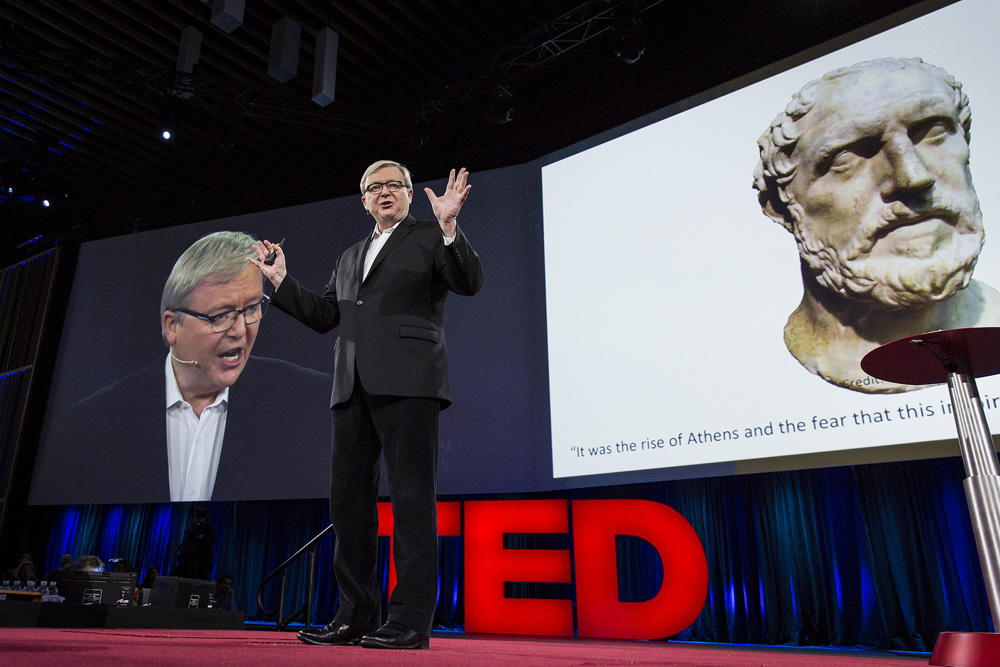 “That lecture theatre would have, for the large part, contained very experienced Ted Talk goers who had over time built up quite strong tolerance against smug. But if this was Erin’s first time and the speaker was Kevin Rudd then frankly she’s extremely lucky to still be alive.”