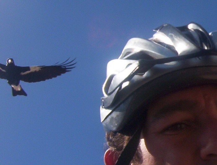 The 26 year old tradie said he was scoffing down his daily four and twenty during his second lunch break when he saw the magpie continually and aggressively swoop a postie on his bicycle two weeks ago.