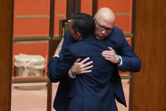 ”Australian’s, Gina in particular, can’t afford three more years of Albo and Jim Chalmers,” said the Opposition leader. ”They need strong leadership and someone with economic knowhow, like Angus Taylor, sorry can’t say that with a straight face.”